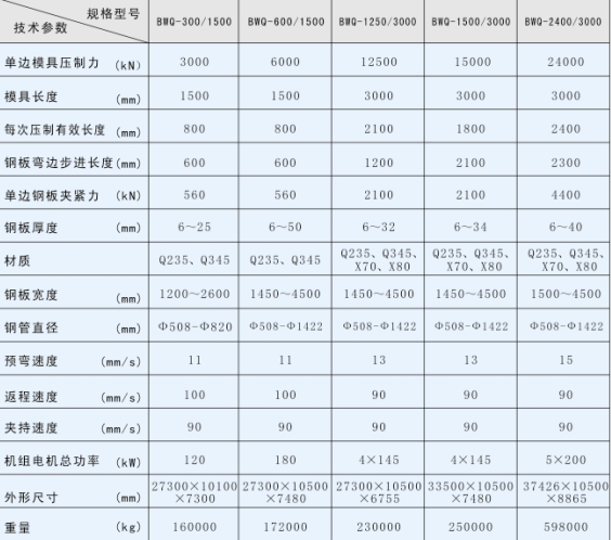 產(chǎn)品功能  對已銑邊的鋼板兩側同時(shí)進(jìn)行壓力彎邊,壓出板邊曲率半徑接近成品鋼管半徑的弧形鋼板。