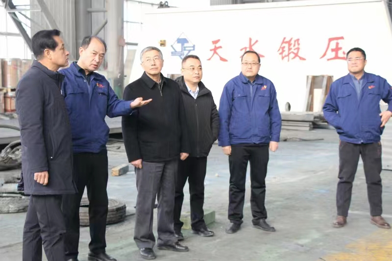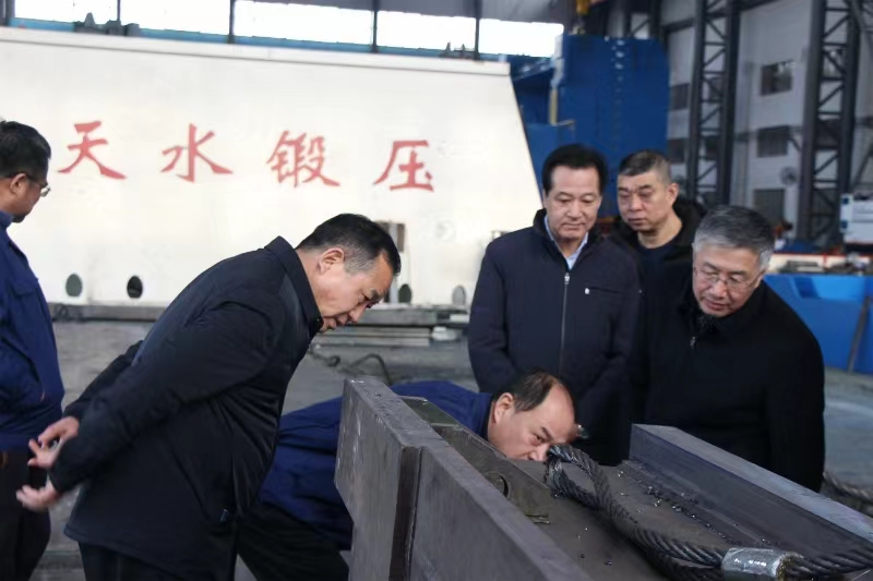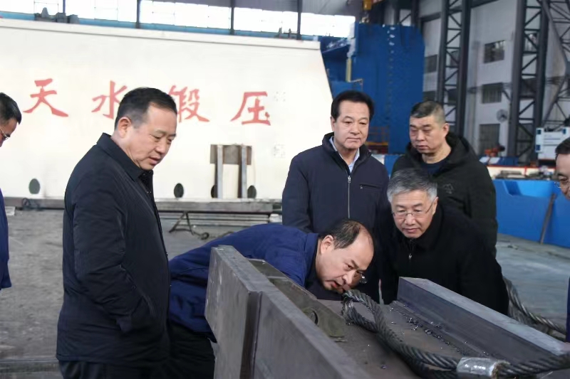 馬主席一行一到天水鍛壓集團,直奔二樓會(huì )議室進(jìn)行了座談。天水鍛壓集團黨委書(shū)記、董事長(cháng)陳鴻詳細向馬主席一行介紹了天水鍛壓的歷史和傳承。他說(shuō):天水鍛壓有著(zhù)將近60年的歷史,也是“三線(xiàn)”建設時(shí)期的老工業(yè)企業(yè),先后榮獲了“全國實(shí)施用戶(hù)滿(mǎn)意工程先進(jìn)企業(yè)”和“全國五一勞動(dòng)獎狀”等殊榮。在技術(shù)創(chuàng )新方面,天水鍛壓承擔了國家高技術(shù)產(chǎn)業(yè)化示范工程項目、國家“863”計劃項目、國家“火炬計劃”項目等,先后獲得國家、省、部、廳、市級科技進(jìn)步獎128項。擁有發(fā)明專(zhuān)利43件、實(shí)用新型專(zhuān)利367件、標準起草權9項,具有自主知識產(chǎn)權的新產(chǎn)品成為企業(yè)新的經(jīng)濟支柱。2023年在繼2022年開(kāi)創(chuàng )了國際國內三個(gè)“第一”的基礎上,成功研發(fā)了國際首臺18000噸超大型鋼管成型機,在超大噸位成型機研發(fā)制造方面始終走在前列,解決了許多“卡脖子”難題,助推企業(yè)平穩健康發(fā)展。 同時(shí),就企業(yè)科技創(chuàng )新、生產(chǎn)經(jīng)營(yíng)、人才培養和穩定職工隊伍,職工的關(guān)懷關(guān)愛(ài)關(guān)心等情況作了介紹。