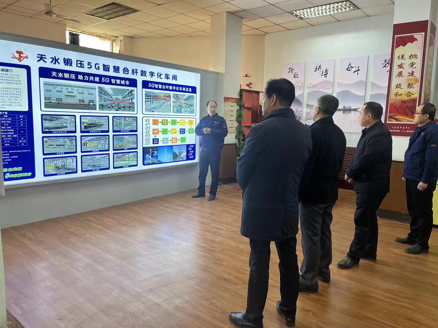 座談結束后,省市領(lǐng)導在集團公司領(lǐng)導的陪同下,參觀(guān)了天水鍛壓產(chǎn)品展廳,并一一了解了大口徑埋弧焊管生產(chǎn)線(xiàn)模型、企業(yè)的發(fā)展歷史和產(chǎn)品介紹。并走進(jìn)5G智慧燈桿演示現場(chǎng),實(shí)地了解了企業(yè)最新創(chuàng )新成果。